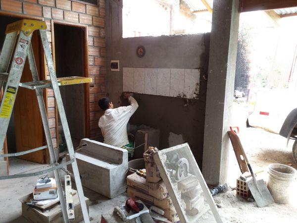 The morning started with rain, but broke up so we could get started on the work. Everyone started on their separate assignments to be getting the work done. Aaron, and Fiona, when she became available after school, started pulling the wires between the lights and switches. Andrew worked on installing the insulation that had been destroyed by the second story construction and then covering with drywall. Fred worked on the studs in a corner that had been destroyed during the construction so it would hold the insulation and wallboard. The ladies went to town to purchase sewing materials. As soon as Isaac was available he was putting the roof peak on the new construction, until the rain started again. Most of the work was inside, so the work continued. After the ladies returned Clara started on the mudding of the installed wallboard and Sue, Dhaly, and Janel proceeded to organize the kitchen at the institute. When Casey (local missionary) arrived he worked on the moving of the washing machine out of the institute kitchen to its new location, capping off the plumbing and installing an electrical box. He helped the ladies by moving some of the furniture in the kitchen. For one day, a lot has been started and accomplished, but there are many more things to do. The current prayer need would be about the rain as it affects not only the few things requiring us to be outside, it slows the cement work on the new addition, which will indirectly slow us down.